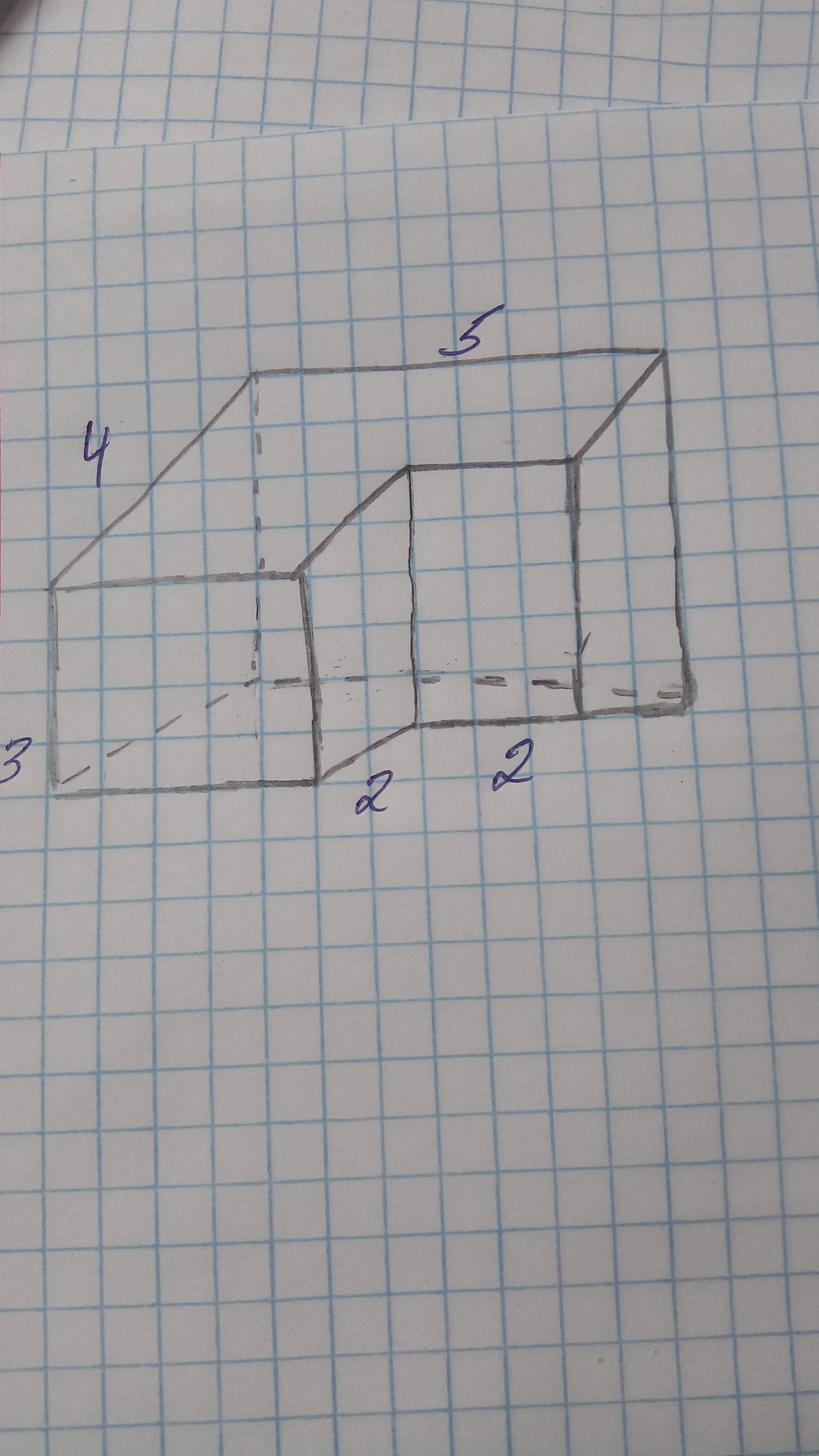 Найдите площадь поверхности многогранника, изображенного на рисунке (все двугранные углы прямые)