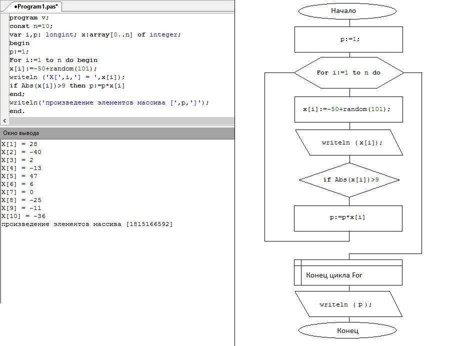 б) Вычислить произведение элементов массива Х(10), модуль которых больше 9.