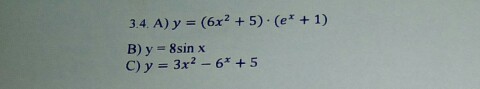 a) y`=12x*(e^x+1) + (6x^2+5)*e^x = 12e^x+12x+6x^2*e^x+5e^x=17e^x+12x+6x^2*e^x