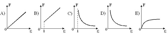 Какой из нижеприведенных графиков наиболее точно отражает зависимость кулоновской силы взаимодействия двух неподвижных точечных зарядов от диэлектрической проницаемости среды?