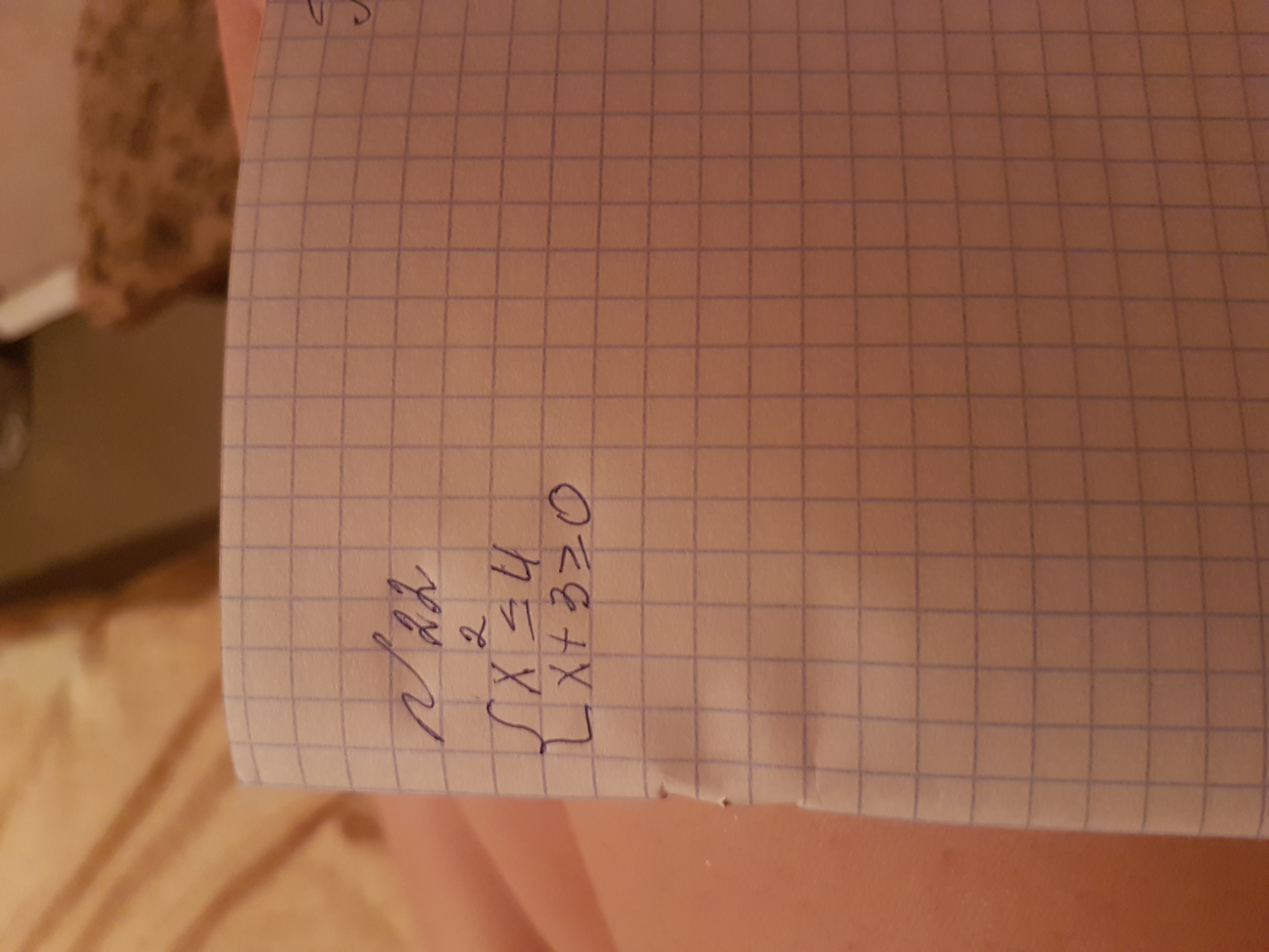 решаем оба уравнения и получаем промежутки , смотрим где они совпадают- это и ответ , а именно [-3;+,бесконечности) и [-2;2] значит решение [-2;2]