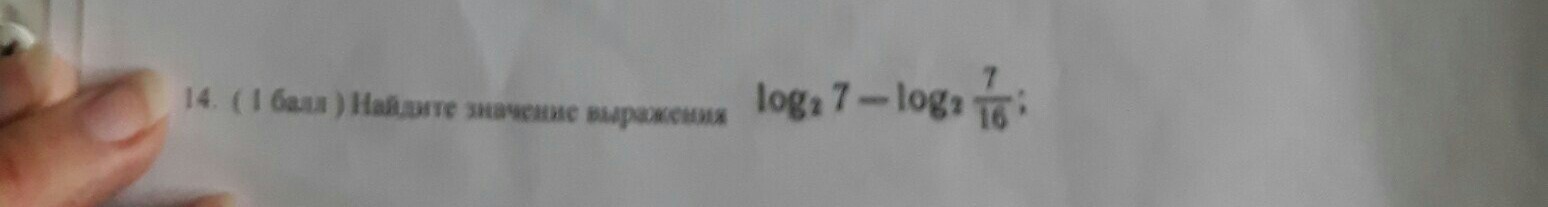 log2 7 - log2 (7/16)=log2 (7:(7/16)=log2 7.(16/7)=