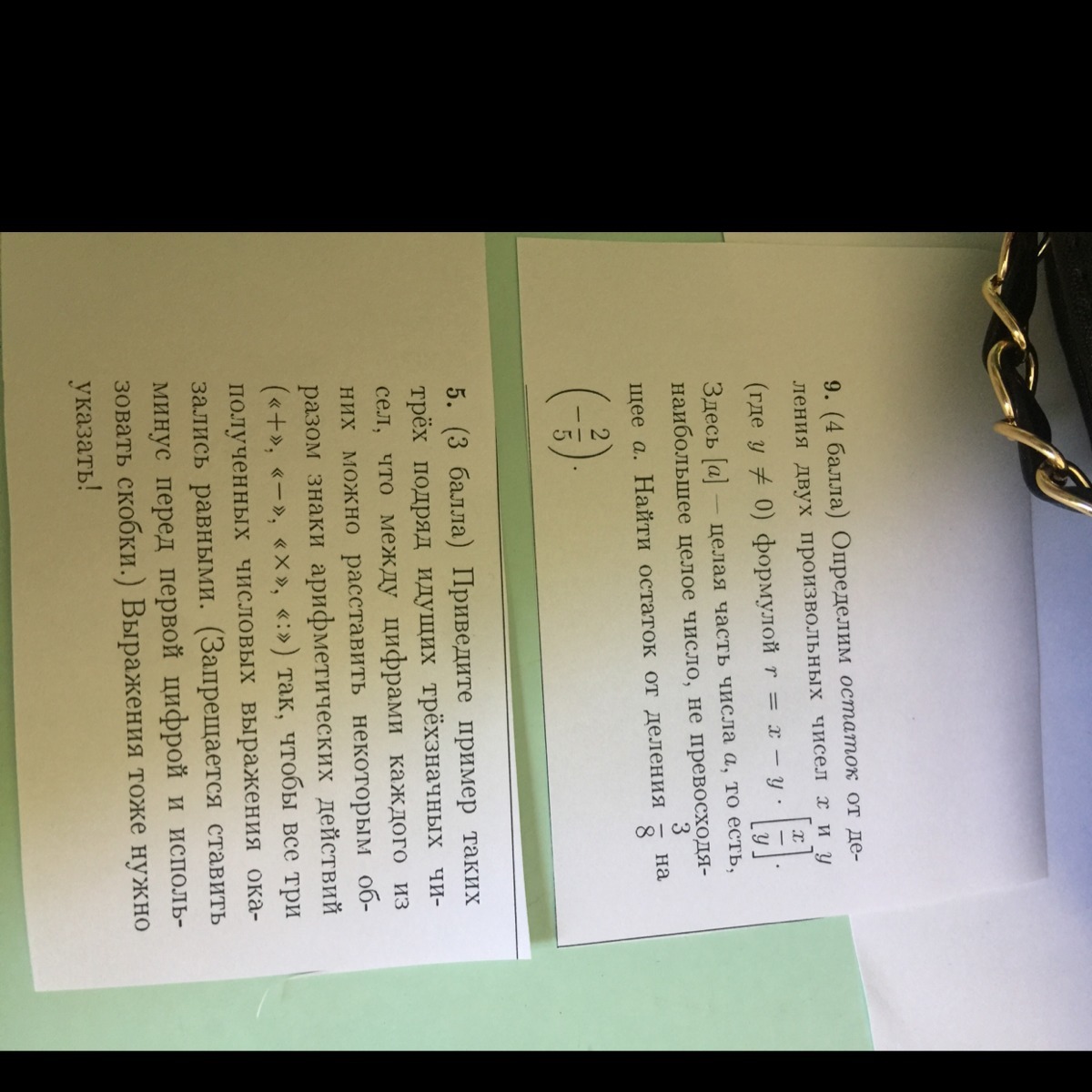 Наконец, вычисляем остаток: r = x - y*[x/y] = 3/8 -(-2/5)*(-1) = 3/8 - 2/5 = -1/40 = -0,025