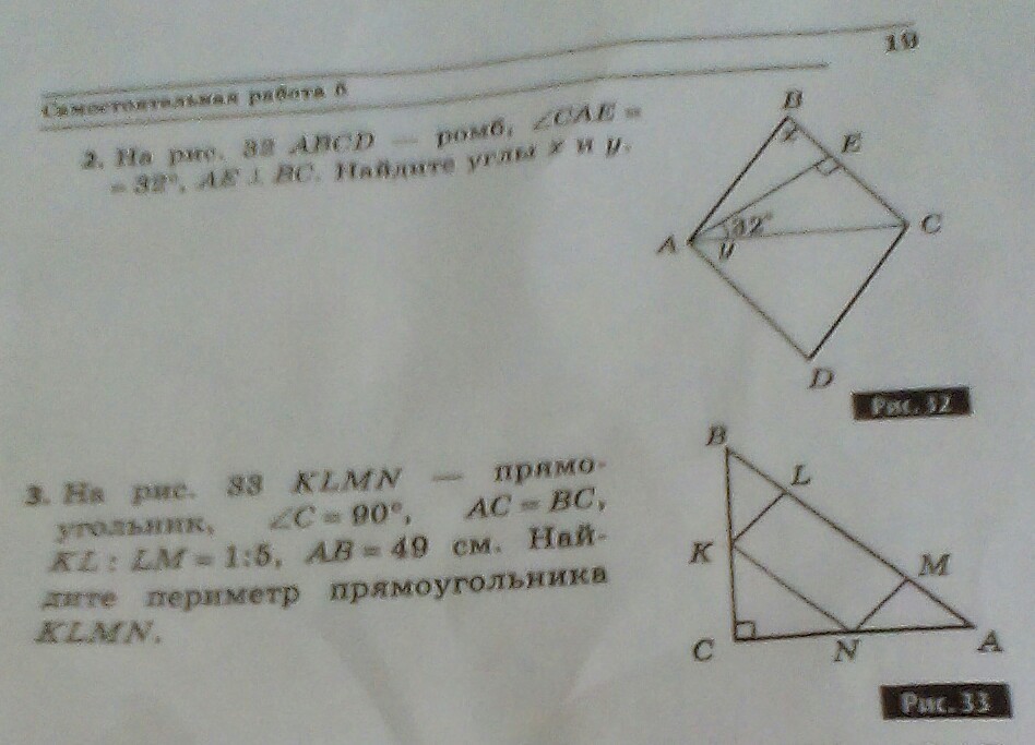 В ромбе диагональ делит угол пополам(свойство ромба),то-есть:угол y=углу32градуса.