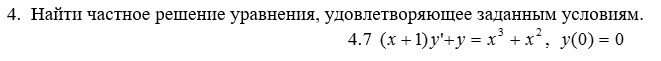 (x+1)*y = S ( x^3 + x^2) dx + C = (1/4)*x^4 + (1/3)*(x^3) + C,
