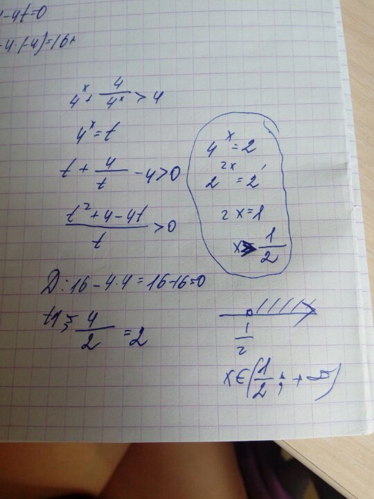 Помогите решить, пожалуйста: 4^x+4/(4^x)>4
