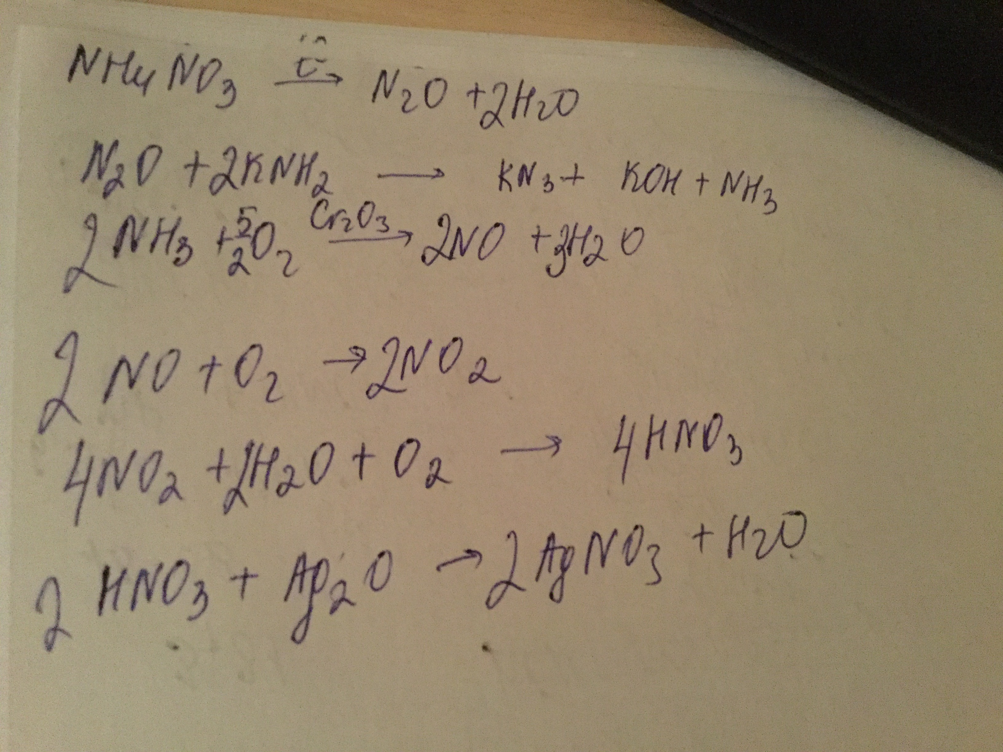 NH4NO3 - NH3 - NO - NO2 - HNO3 - AgNO3.