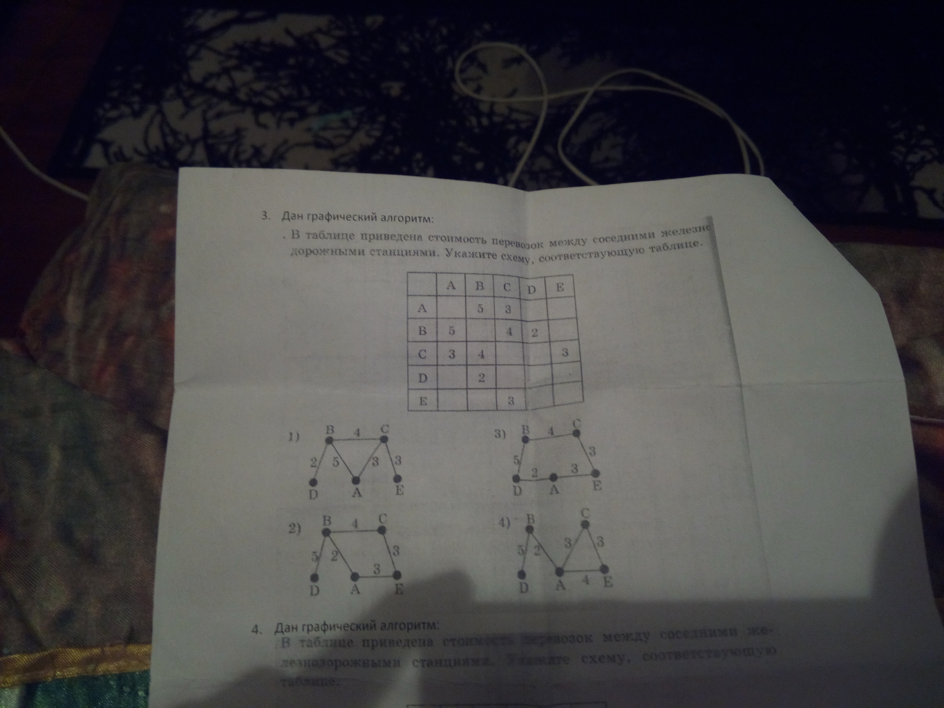 Проанализировав таблицу, можем заметить, что стоимость между станциями В и D= 2, а этому условию соответствует одна единственная схема под номером 1. Ответ: 1