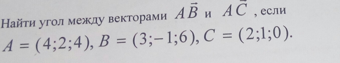 (AB) = (3-4; -1-2; 6-4) = (-1; -3; 2); AC = (2-4; 1-2; 0-4) = (-2; -1; -4)