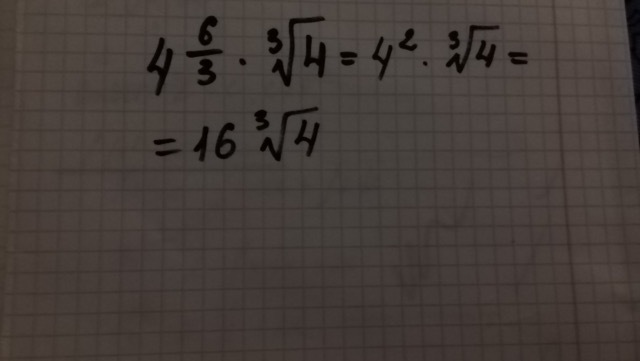 4 ^(6/3) *4 (1/3) складываем степени = 4^(7/3)=25.3