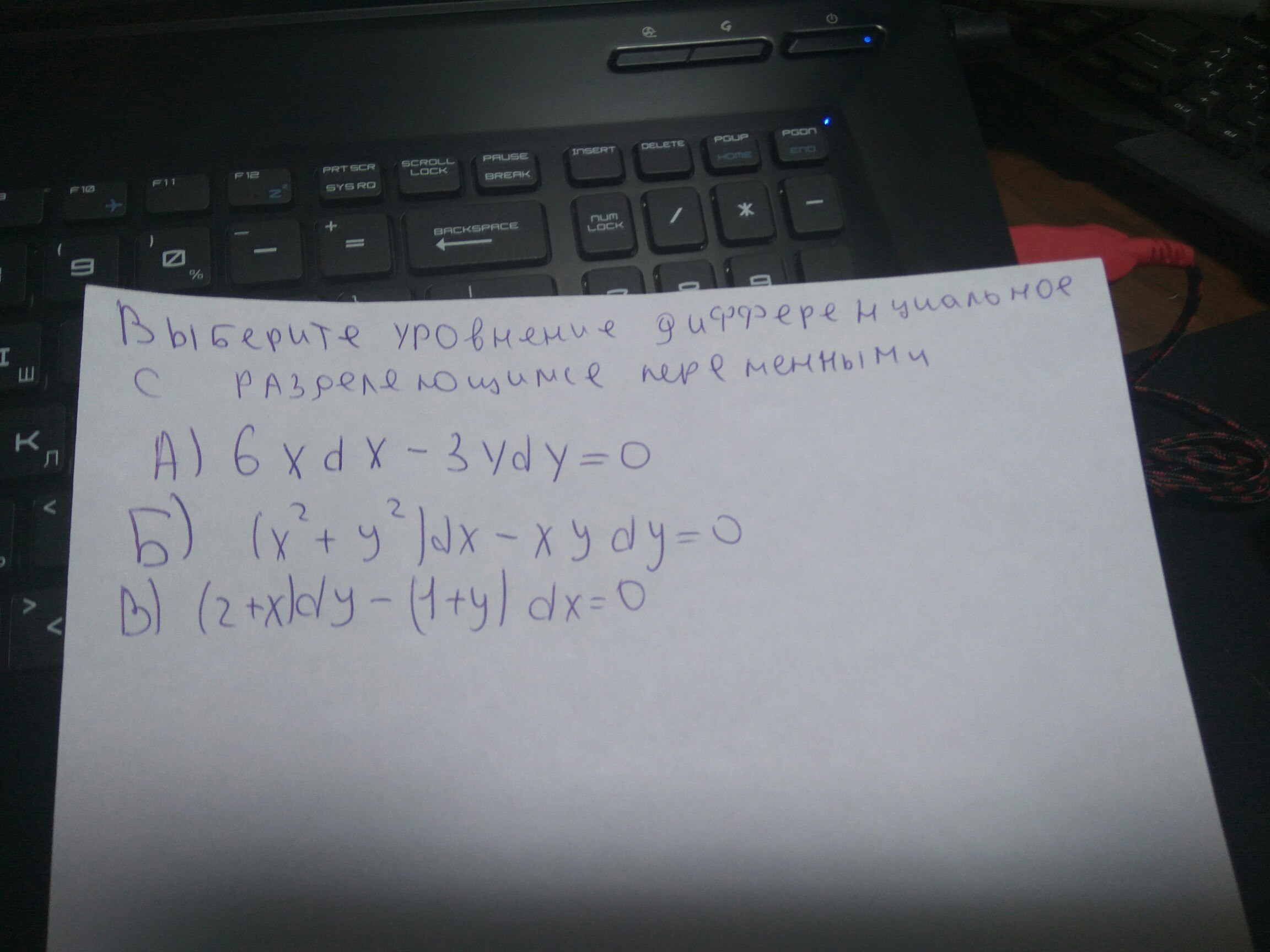 Выберите уравнения дифференциальное с разделяющимся переменными