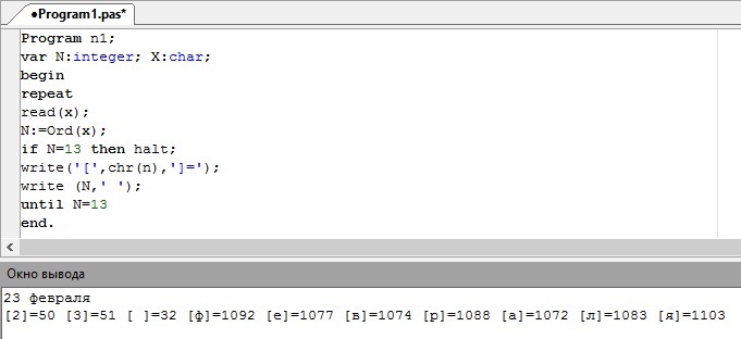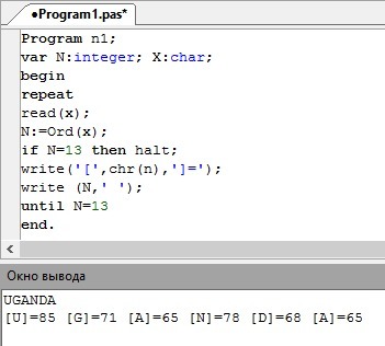 Если интересно то в PascalABC.NET за то чтобы узнать номер символа отвечает ord(), а чтобы декодировать chr(). Например ord('L')= 76 а chr(76)=L