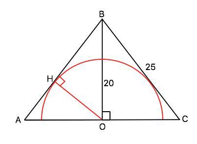 высота конуса равна 20 см, образующая равна 25см. вычислите радиус вписанного полушара, основание, которого лежит на тоснованииконуса