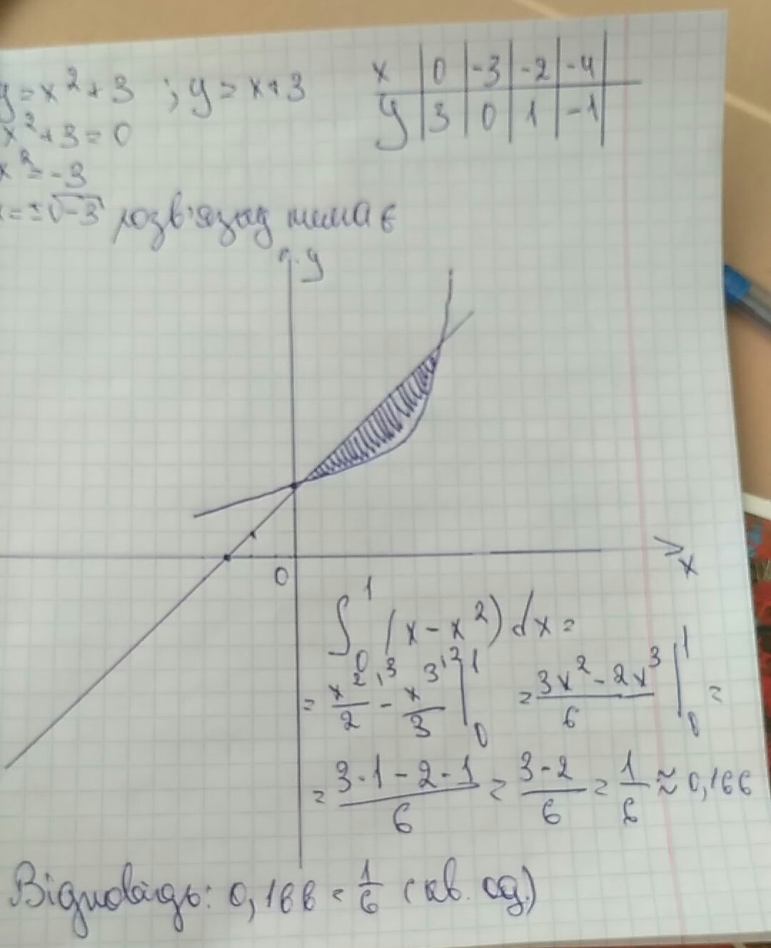 Площадь фигуры 0.166 или 1/6 квадратных единиц