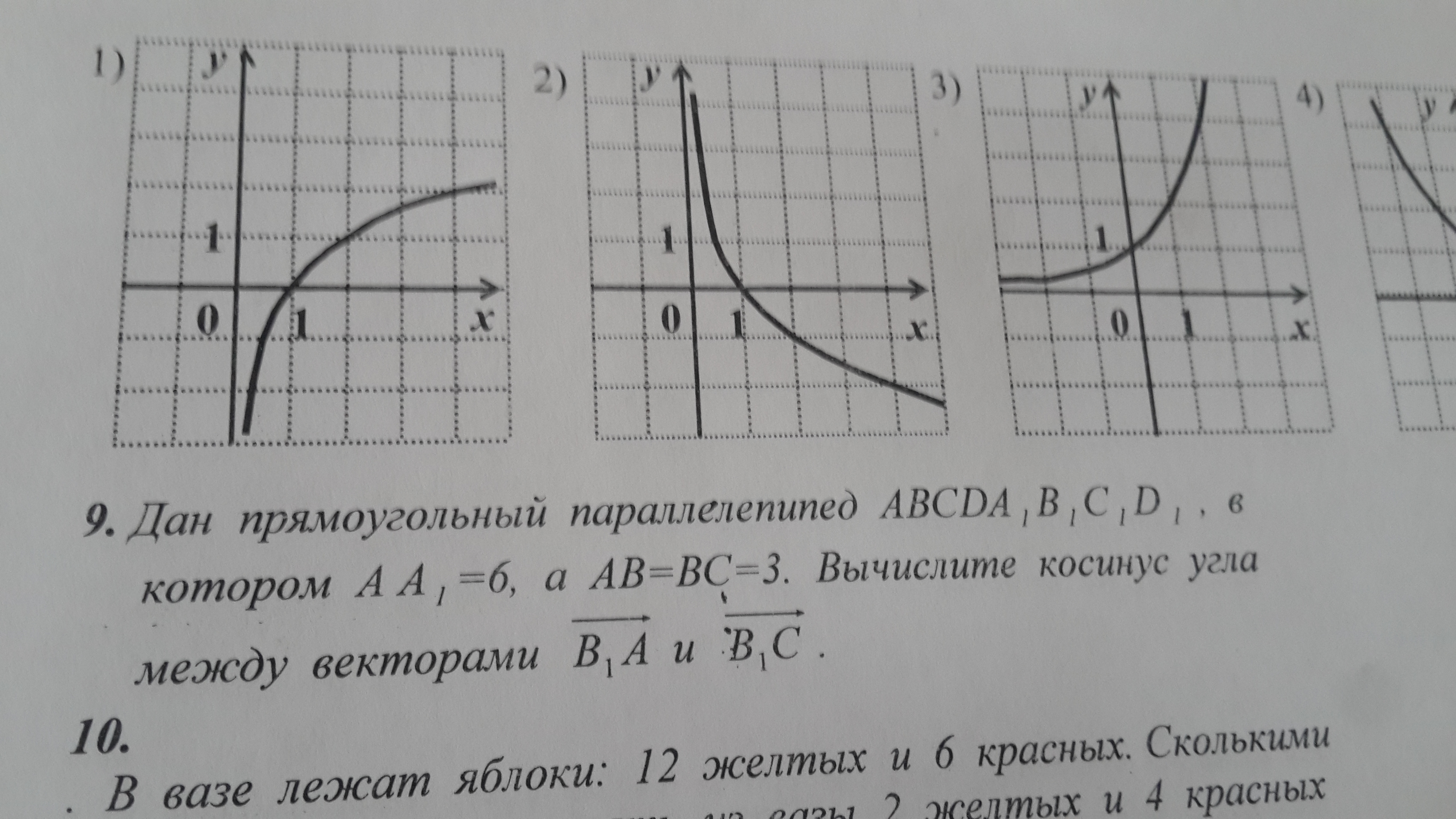 Теперь считаем косинус между векторами B1A и B1C, как отношение скалярного произведения векторов к произведению их модулей.