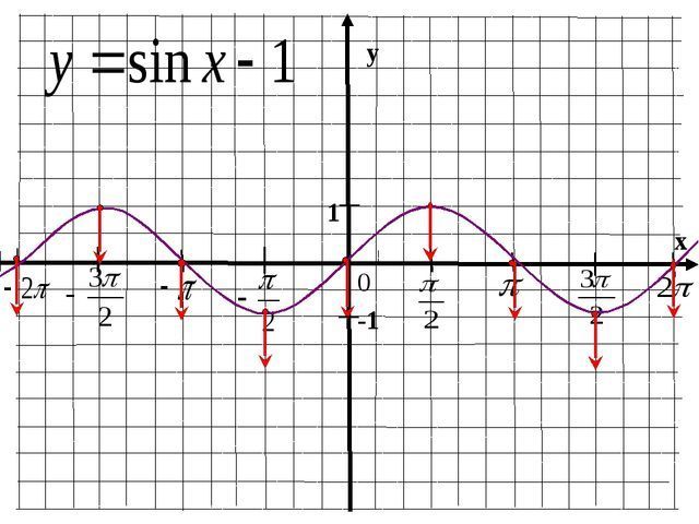 Изобразите график функции у =Sin X-1 Укажите область определения и область значений этой функции