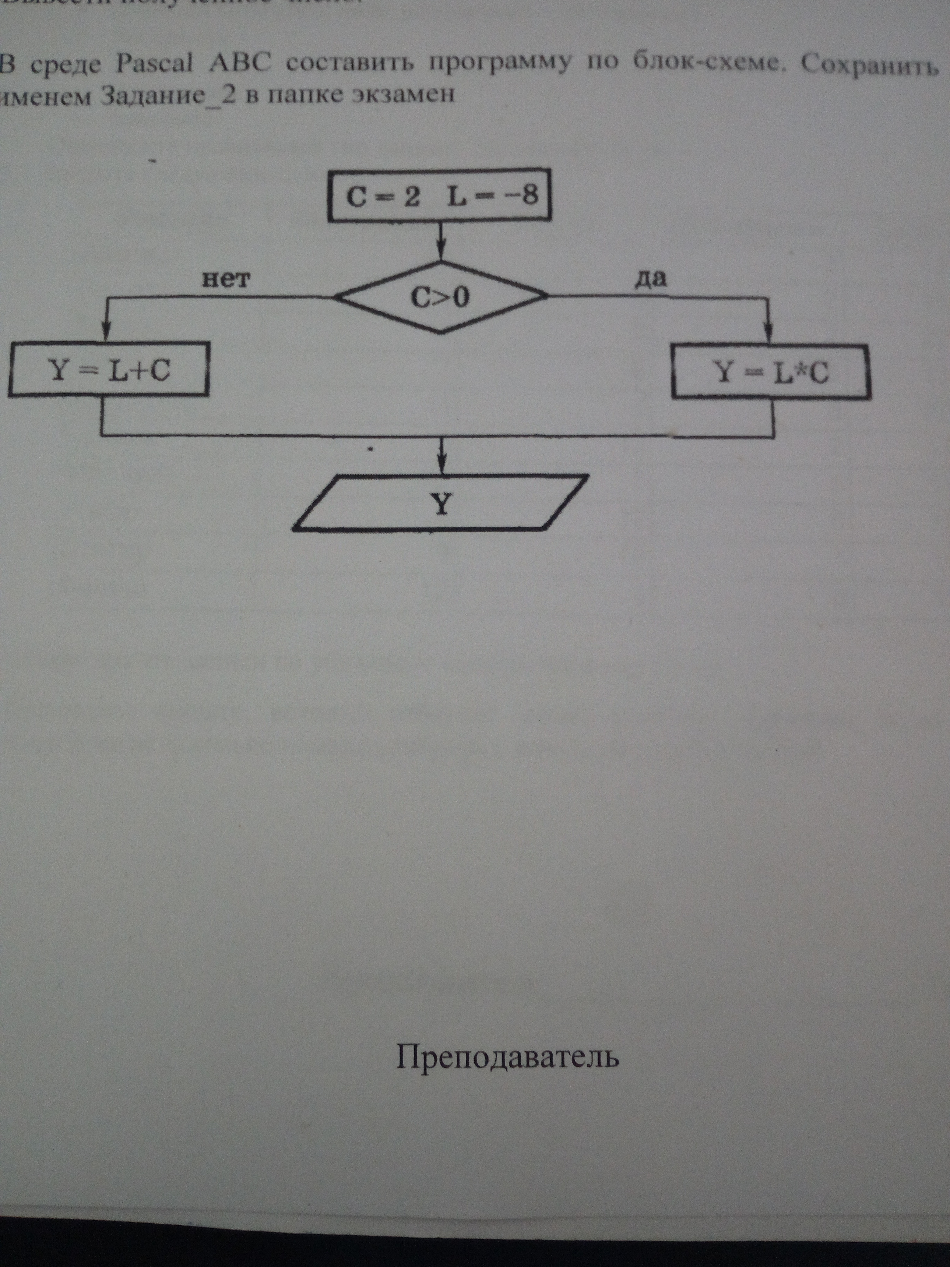 Если я ничего не путаю то на блок схеме изображено условие IF и тогда программа будет выглядеть как у меня на скрине