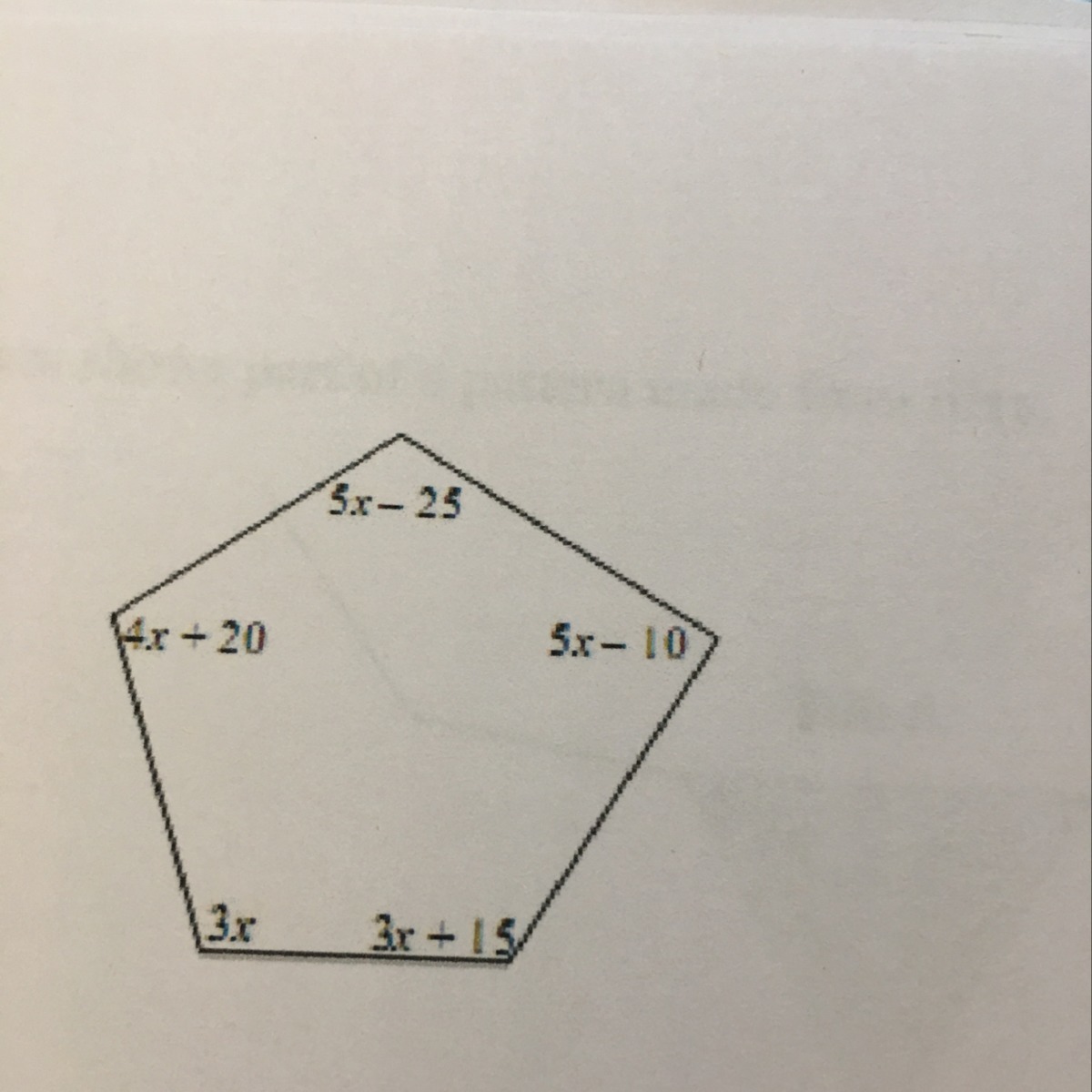 3x + (3x + 15) + (5x - 10) + (5x - 25) + (4x + 20) = 540