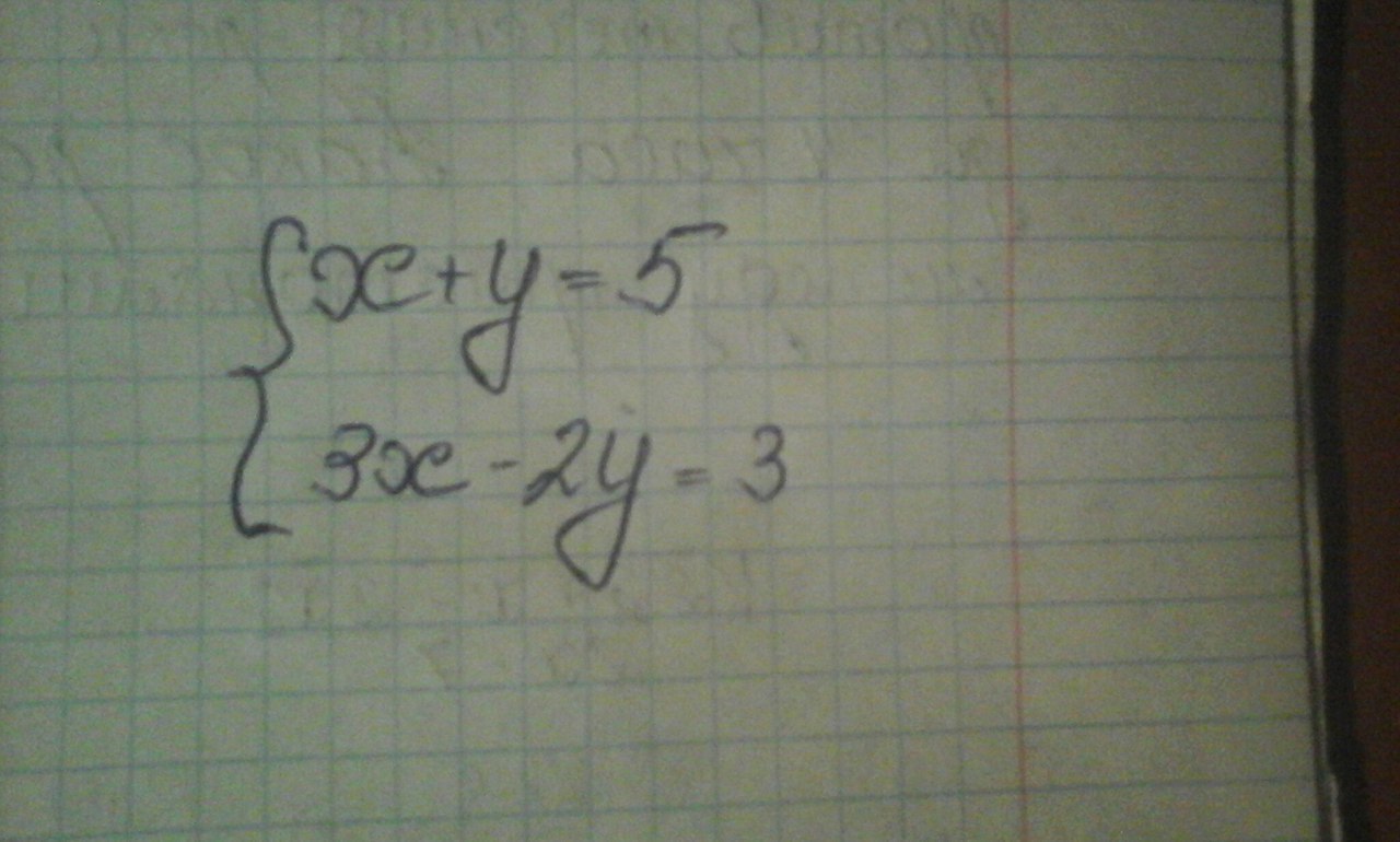 3*х-2*у=3 3*х-2*(5-х)=3 3*х-10+2*х=3 5*х=3+10 5*х=13 х=13/5 х=2,6