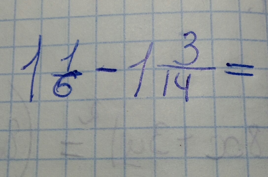 1 1/6-1 3/14=1/6-3/14=-(3/14-1/6)=-(9/42-7/42)=-2/42=-1/21.