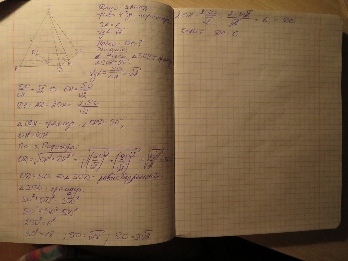 В правильной четырёхугольной пирамиде боковое ребро образует с плоскостью основания угол 60 градусов. Высота пирамиды равна 3. Найдите площадь поверхности пирамиды?