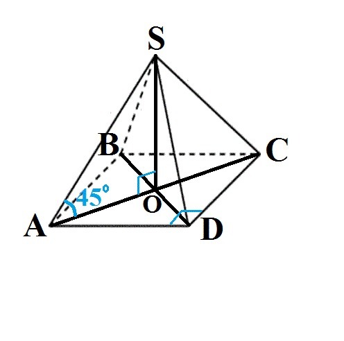 Высота (SO) опущена в точку пересечения диагоналей основания.