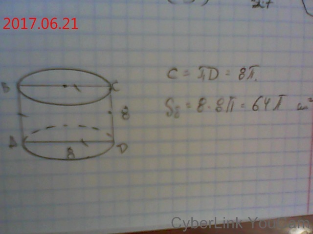 2)Осьовим перетином циліндра є квадрат зі стороною 8 см . Знайти бокову поверхню циліндра.