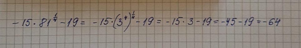 -15*81^1/4-19=-15*(3^4)^1/4-19=-15*3-19=-45-19=--64