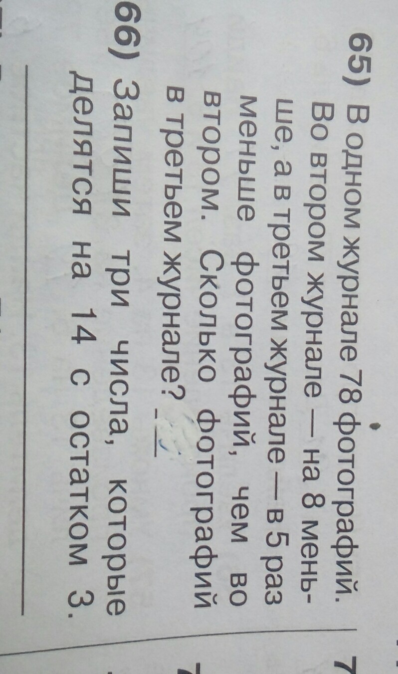 65. 1. 78 - 8 = 70 - фотографий во втором журнале;