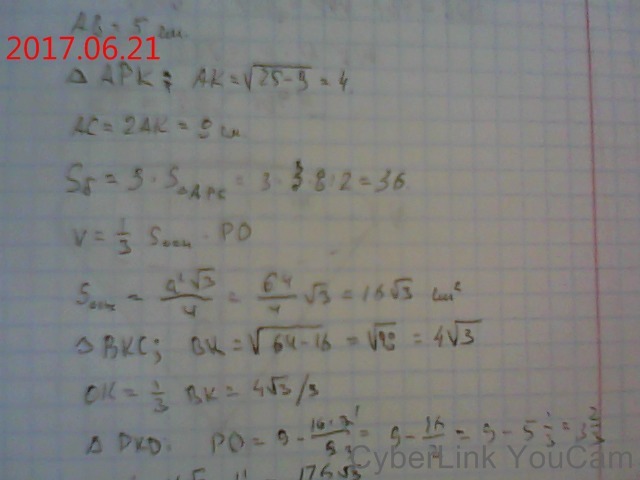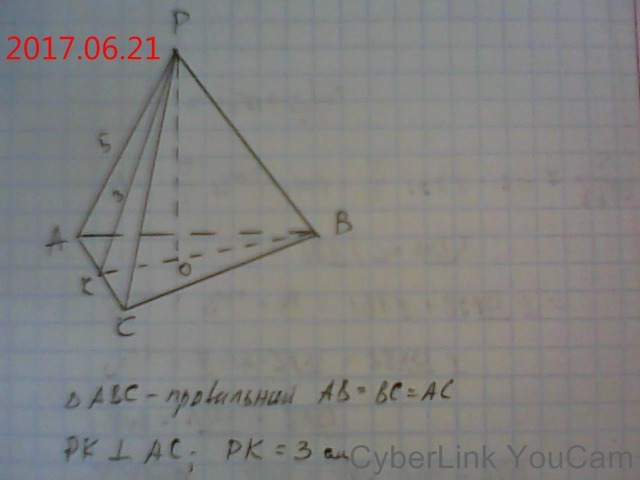 боковое ребро и апофема правильной треугольной пирамиды соответственно равны 5см и 3см вычислить площадь боковой поверхности и обьем пирамиды