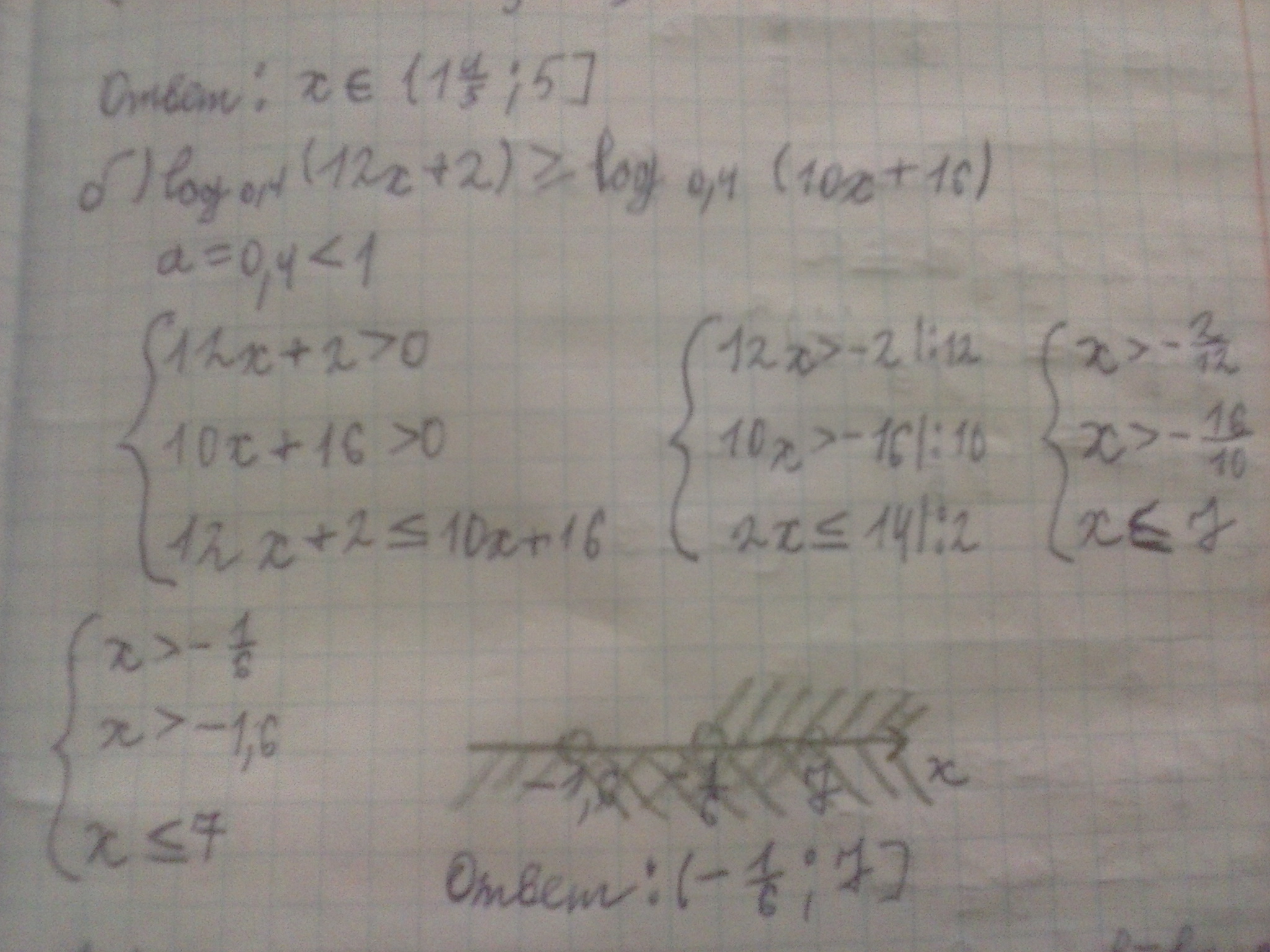 б) log₀₎₄(12x +2) < log₀₎₄(10x +16)