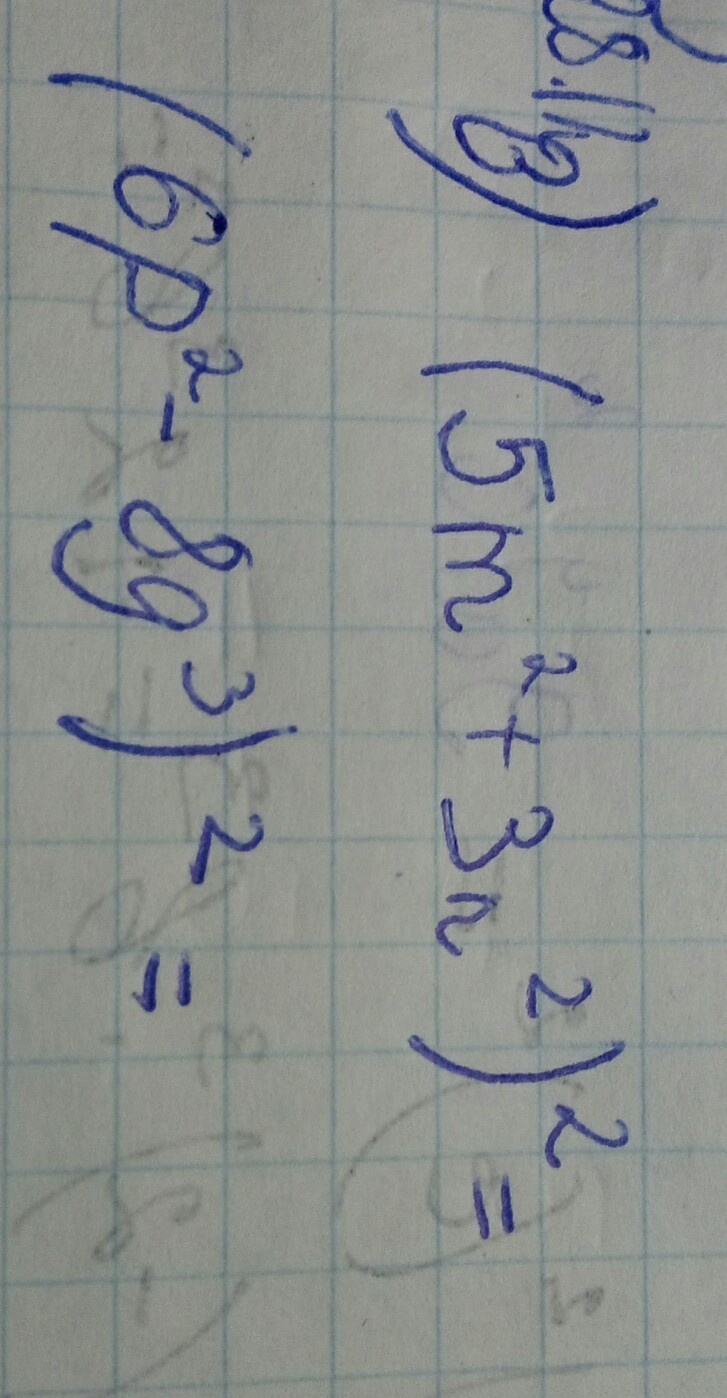 1). (5m^2)^2+2*5m^2*3n^2+(3n^2)^2=25m^4+30m^2n^2+9n^4