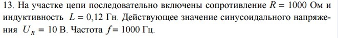 индуктивность L = 0,12 Гн. Действующее значение синусоидального напряже-