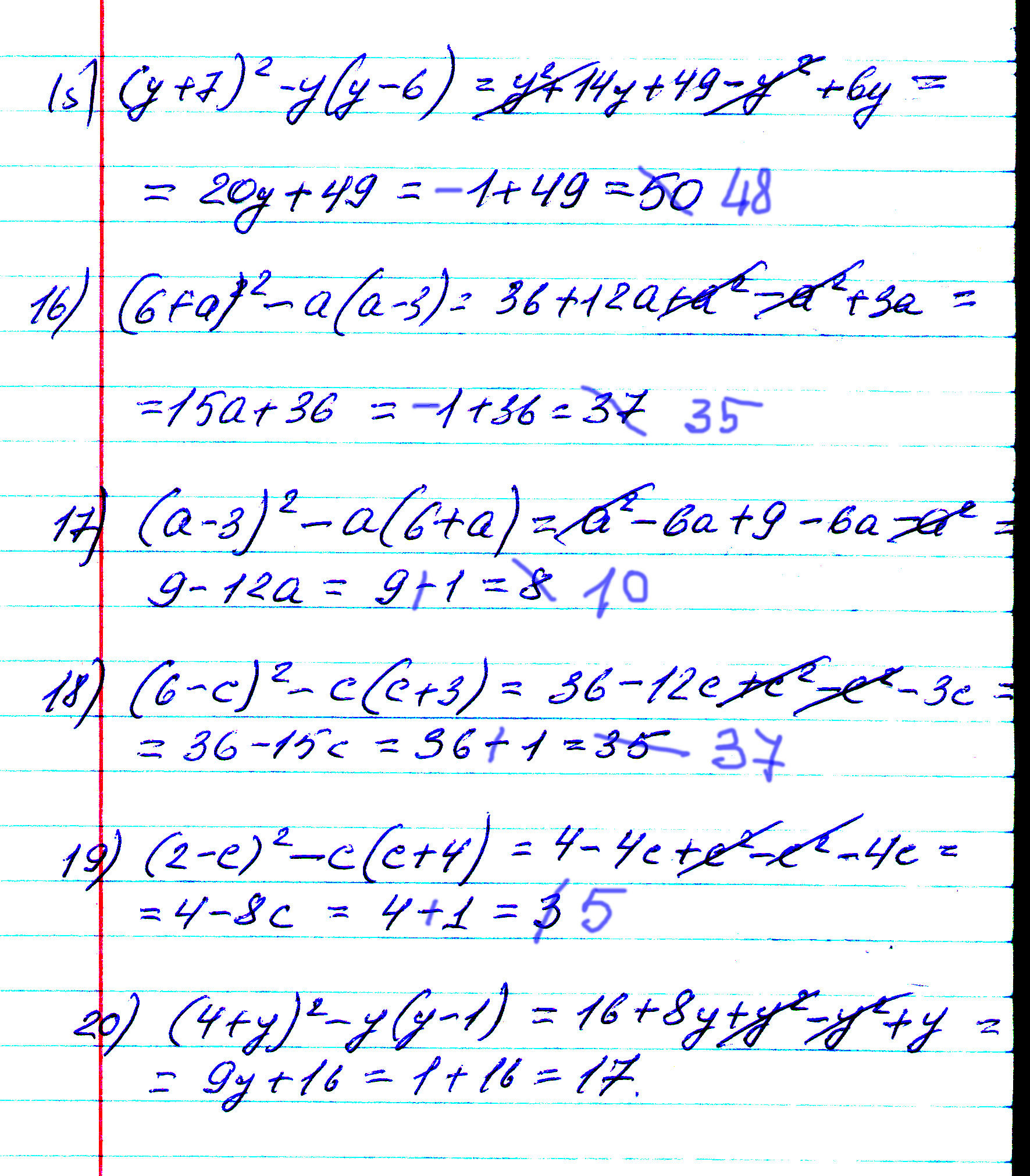 Для Минене0. Алгебра верно, а подстановка неверно везде, кроме последнего, там плюсы. Списывай, скоро удалю, если не исправят.