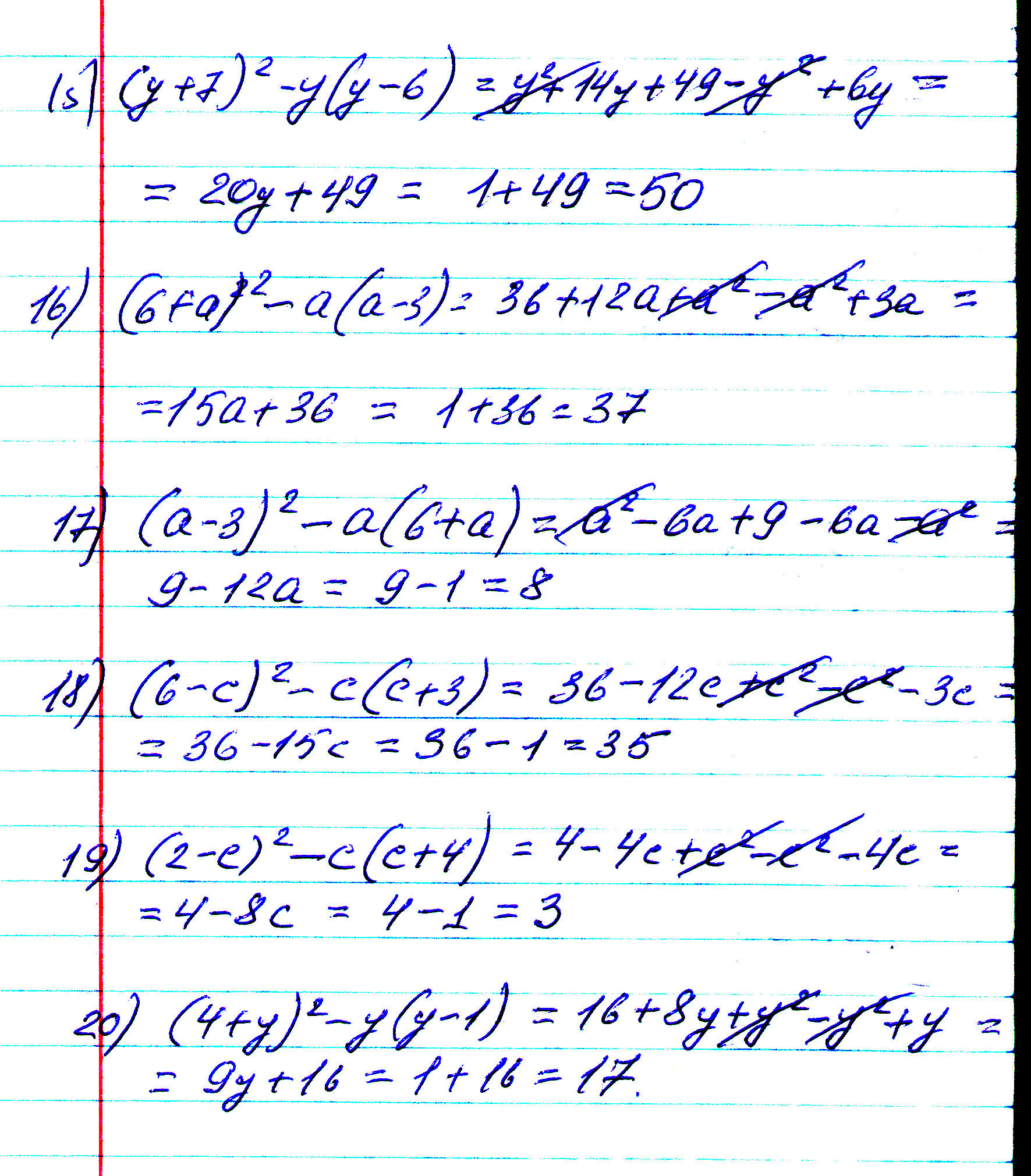 (4+у)-у(у-1)=16+8у+у²-у²+у=16+9у