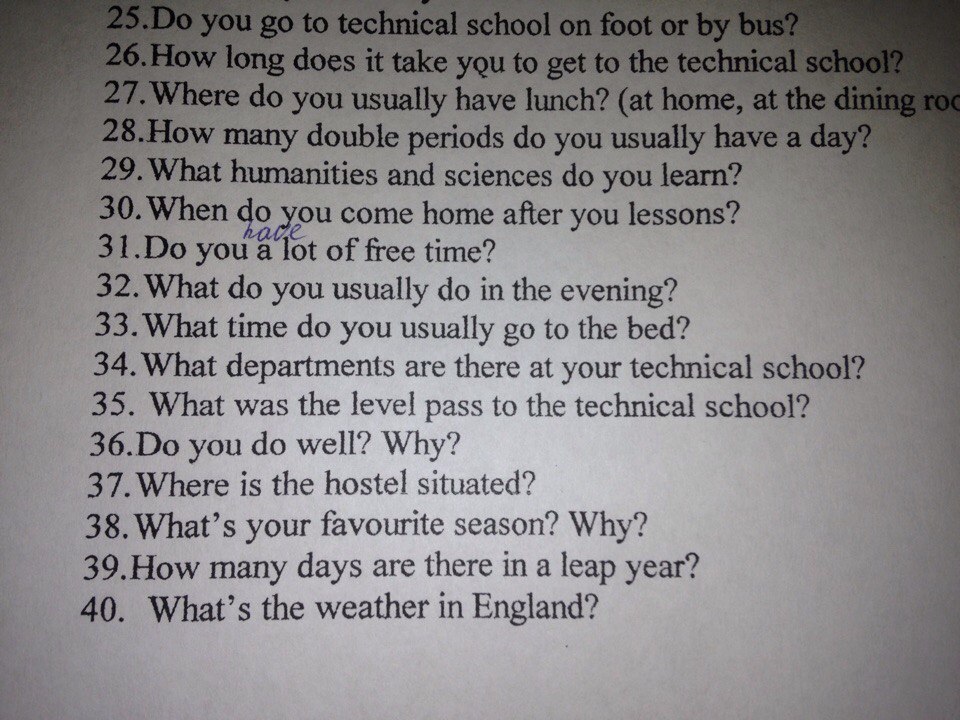 31.No, I have not a lot of free time ,because I have many hobbies. ( Нет,у меня нету много свободного времени, ибо у меня есть много хобби)