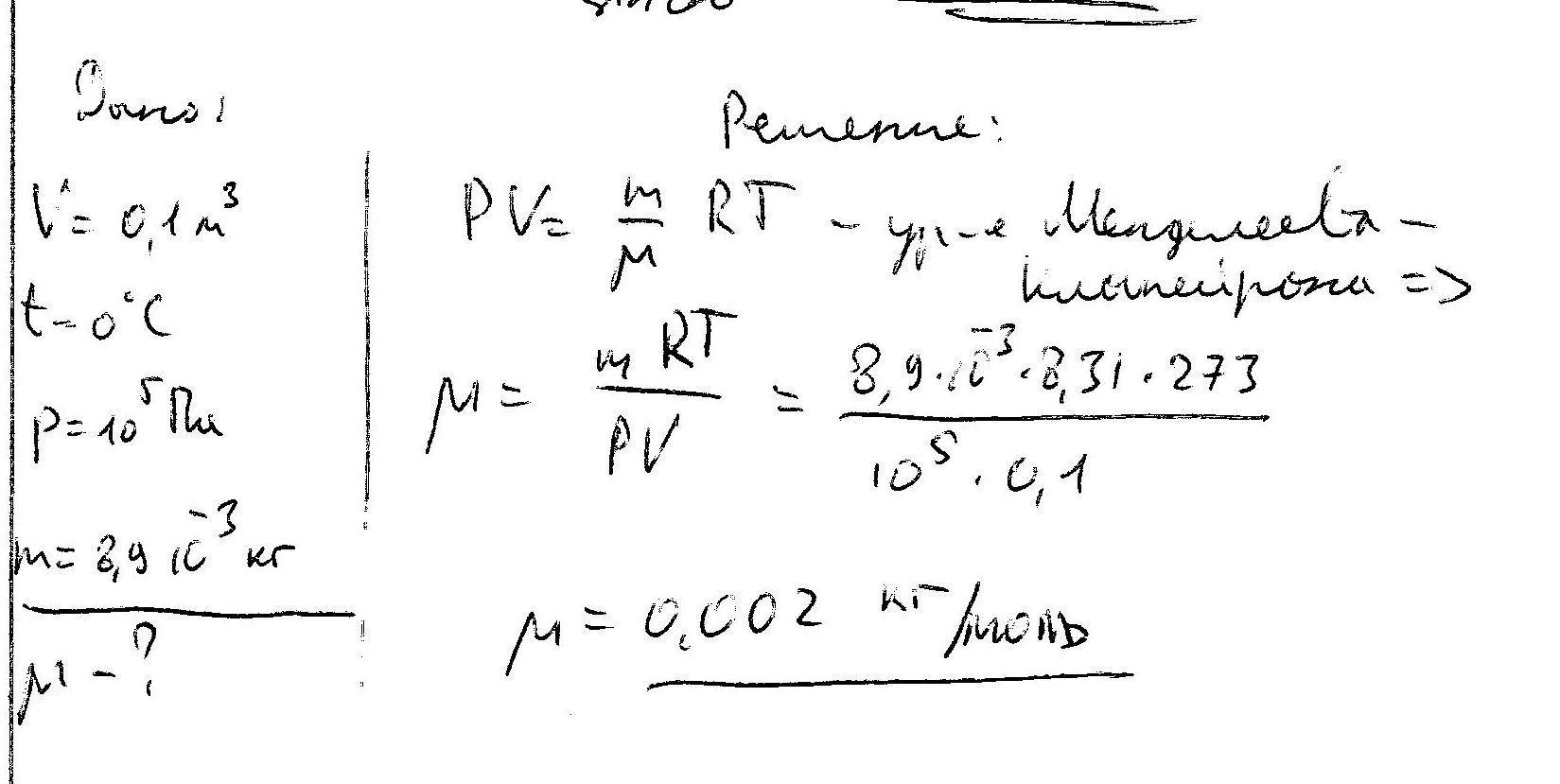 В балоне емкостью 0,1м3 при температуре 0°Canon и давления 105 ПАсодержимость 8,9*10-3 кг газа определите моличную массу газа