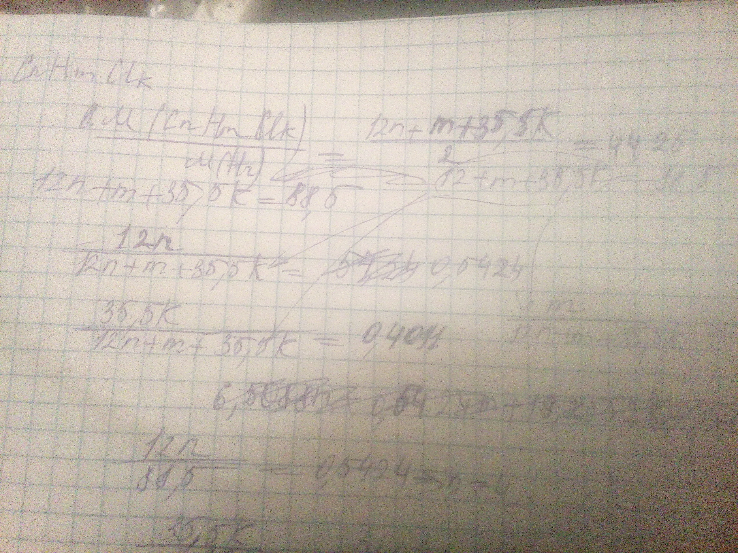 выведите молекулярную формулу органического вещества, если массовая доля С=54,24% Cl=40,11% H=5,65%, а относительная плотность паров этого вещества по водороду равна 44,25