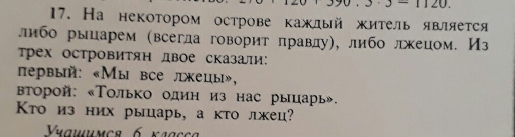 Ответ: первый островитянин - лжец, а второй - рыцарь.