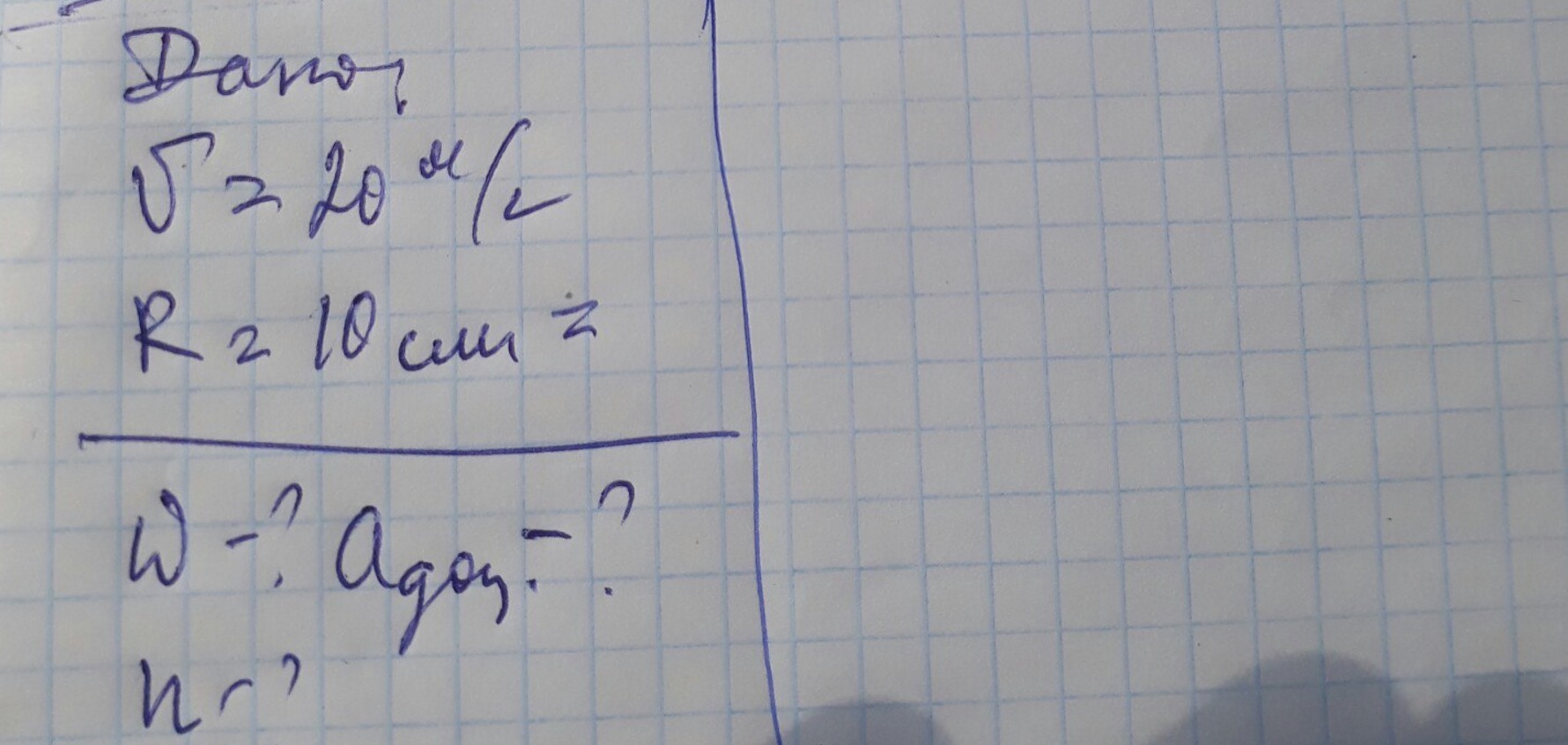 w=V/R=20/0,1=200 рад/с