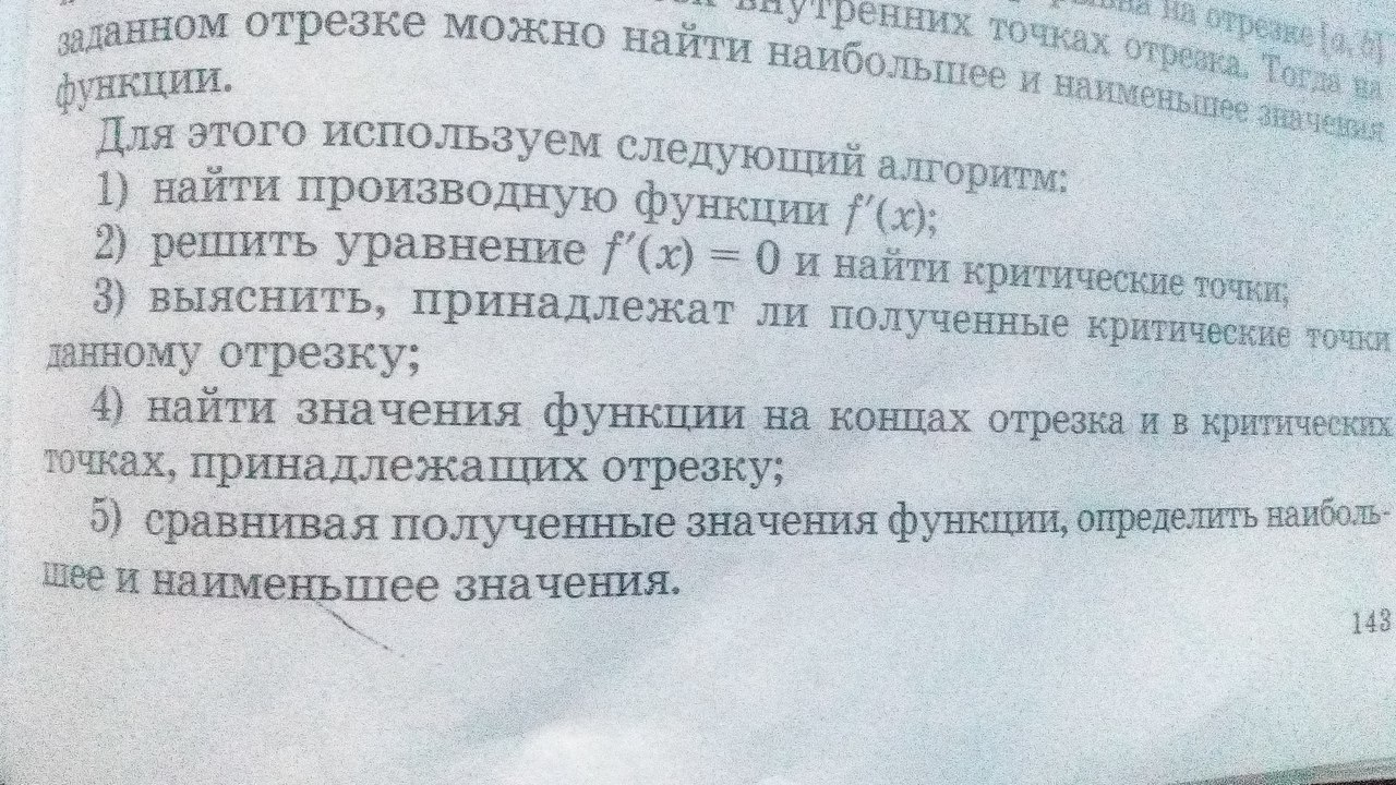 Найдите наибольшие и наименьшие значения данной функции с использованием данного алгоритма! Прошу объяснять каждое действие!