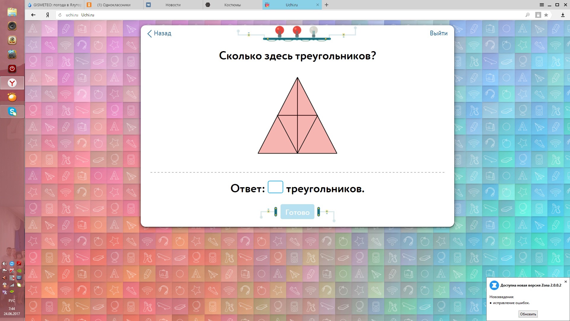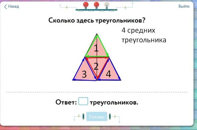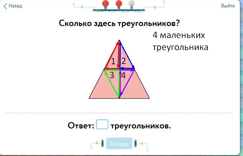 1 большой,собственно сам треугольник,