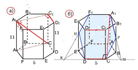 б) Данное сечение проходит через стороны DC и и A1F1 оснований призмы.