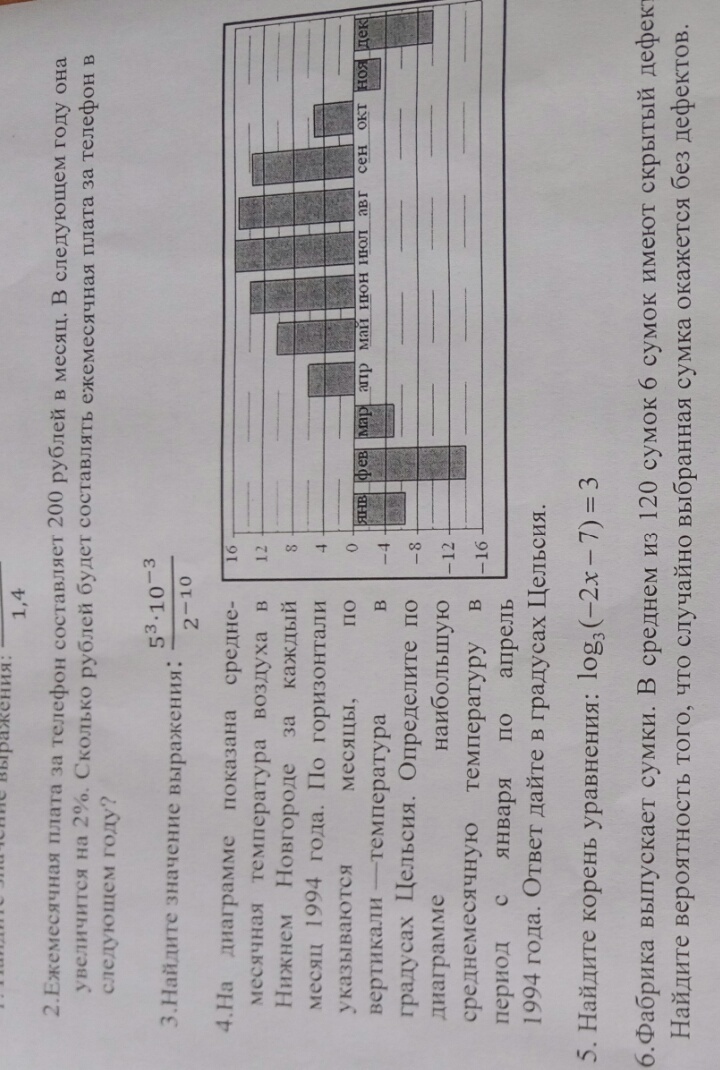 Решение в приложении. В 4-й задаче только ответ, который снимается с диаграммы сразу. Он очевиден, - только в апреле среднемесячная температура выше нуля. В январе, феврале, марте среднемесячные температуры отрицательные. Но если попытаться как-то расписать решение, можно выписать температуры за каждый из этих 4-х месяцев. Получится ряд из 4-х чисел, из которого надо выбрать наибольшее: 6°С в апреле. Больше придумать нечего.