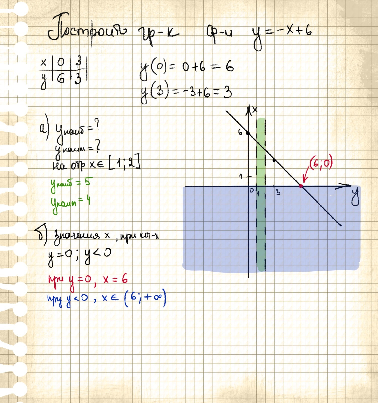 Постройте график функции y = -x + 6