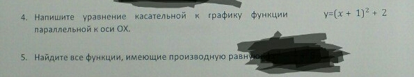 имеет вершину в точке (-1,2) , оси направлены вверх. Поэтому касательная к параболе, параллельная оси ОХ, будет проходить через вершину. И её уравнение будет у=2 (ордината вершины у=2) .