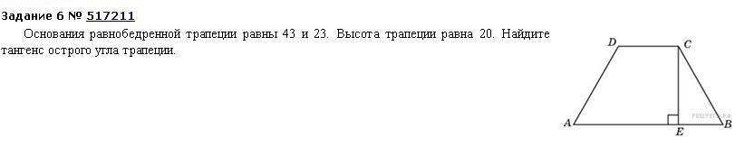 тангенс острого угла - это отношение CE/BE = 20/10 = 2