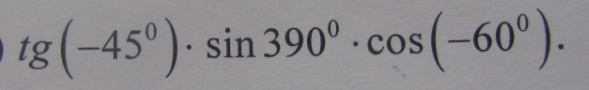 tg(-45^circ )cdot sin390^circ cdot cos(-60^circ )=-1cdot sin30^circ cdot cos60^circ =\\=- frac{1}{2} cdot  frac{1}{2} =- frac{1}{4}