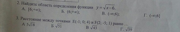 1)подкоренное уравнение всегда должно быть больше нуля значит и область определения не должно выходить за эти рамки т.е х-6>=0