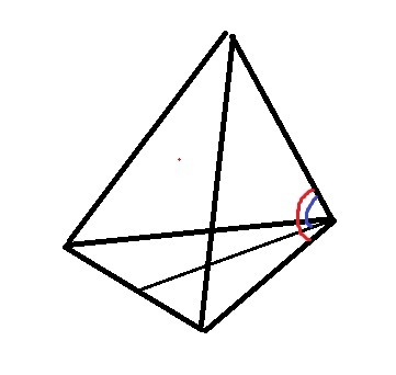 Синий угол меньше красного не при любом виде пирамиды. В некоторых случаях эти углы равны. Например, если в основании прямоугольный треугольник.